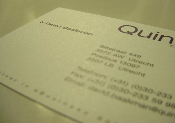 Visitekaartje 20th Apr 2004•1 min read•Tags: Nederlands Al meteen de tweede dag kreeg ik een doosje met visitekaartjes: Woei, m’n eerste visitekaartjes ooit. Nu nog mensen tegenkomen aan wie ik ze kan geven… :) [geschreven op 06-02] ← Next Dell gebruikshandleiding Prev → Spam