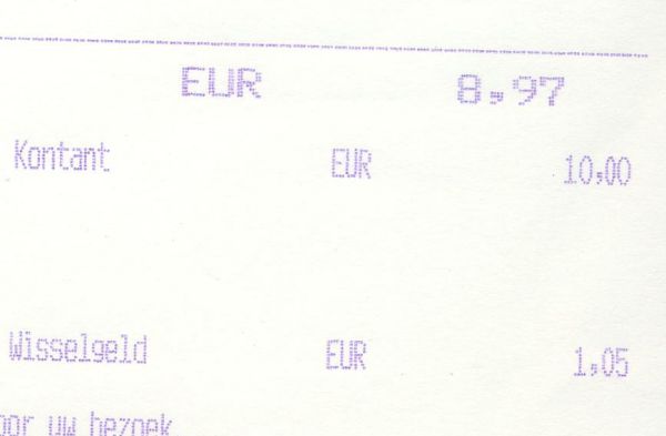 Deze bon slingerde al ruim een week op m’n bureau, maar net zag ik het pas: Kontant – Totaal != Wisselgeld.