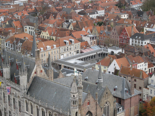 Al snel kwam het idee om een toren te beklimmen om een mooi uitzicht te hebben over de stad. Zo gezegd, zo gedaan. Drie-honderd treden later stonden we bovenaan de Belfort. Aan de ene kant wel leuk, maar aan de andere kant vind ik dat soort uitzichten van bovenaf altijd zo nutteloos eigenlijk: als ik een klein van bovenaf overzicht wil hebben kan ik ook Google-Earth erbij pakken natuurlijk :)