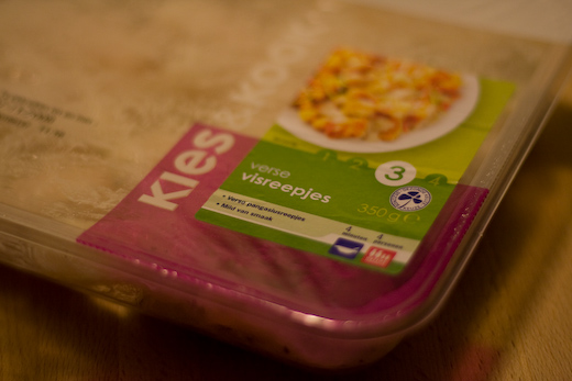 Overigens was de Pangasius in combinatie met Fusilli, Groene Pesto-groente-mix en zoet-zure Uncle Bens best goed te eten. Een beetje vreemd, dat dan wel weer… (de in eerste instantie uitgekozen saus bleek bij aankomst thuis kaas te bevatten… waarom lees ik dat soort dingen nou nooit in de winkel?)