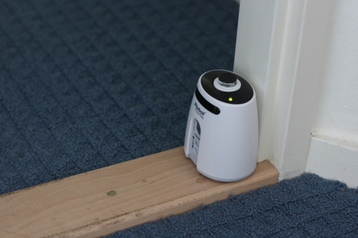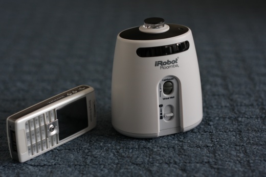 The Roomba 560 comes with two virtual lighthouses that you can place between your rooms (at this moment I have placed them on top of my door step, so I can’t close my doors anymore, I’ll find out whether they’ll also work when I place them behind the door step). The Roomba will first clean the first room, and when it is finished, it will pass through the door step and clean the next room. After it has cleaned all the rooms it will return to the first room, and then dock itself to the docking station. When the Roomba starts cleaning, it will activate the virtual lighthouses, and when it is done cleaning it will deactivate them again, how neat!